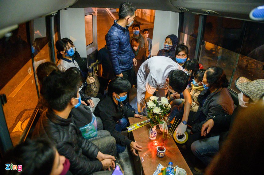 Thi thể của bé A. được chuyển lên xe tang để đưa đi hỏa táng vào rạng sáng 13/3. Ảnh: Hải Nam. |